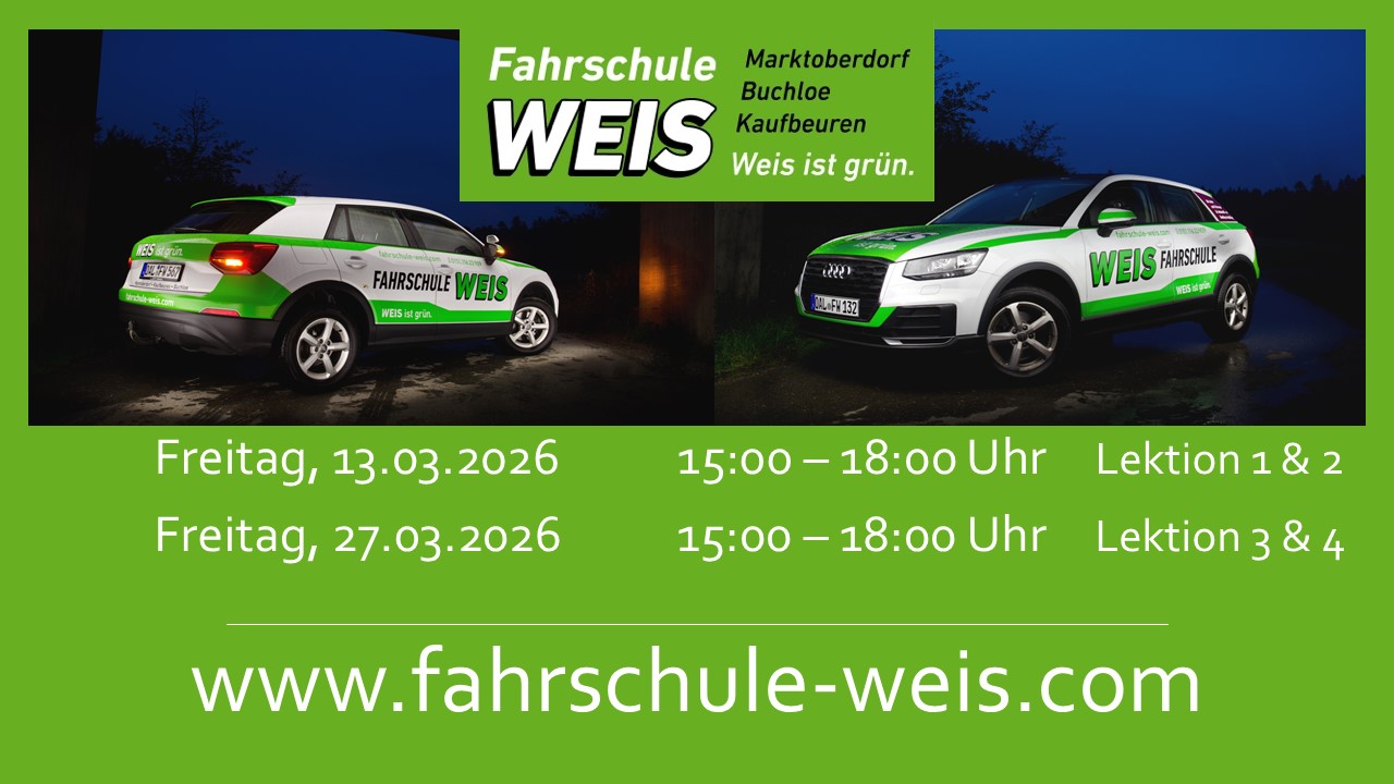 Infos und Anmeldung unter info@fahrschule-weis.com. Weitere Infos auch gerne telefonisch 0151/11623909 oder 0151/15764663